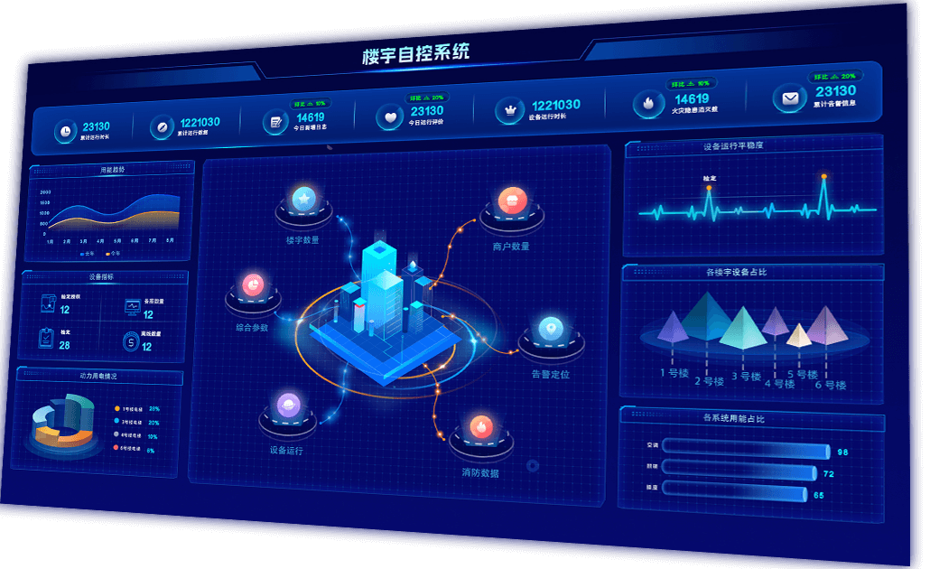 7x24对建筑内带电设备全天候控制,全面监测设备运行状态和参数,先进通讯??榧映?,打破数据壁垒,实现万物互联。