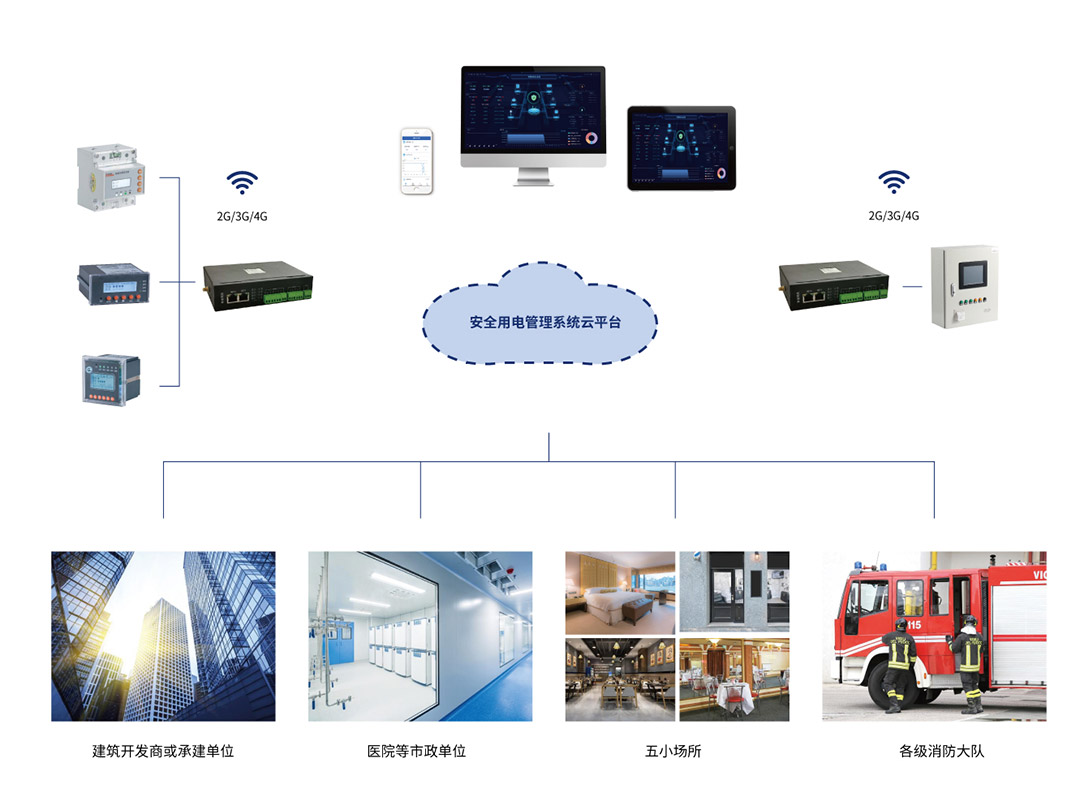安全用电管理系统基于移动互联网、云计算技术、通过物联网传感终端,将办公建筑、学校、医院、宾馆、体育场馆、生产企业等人员密集场所的电气安全数据,实时传输至安全用电管理云服务器,提供不间断的数据跟踪、统计分析和安全监管,将各种安全隐患信息及告警信号,并推送给企业有关人员,以便及时检查和消除隐患,真正做到防患于未然。